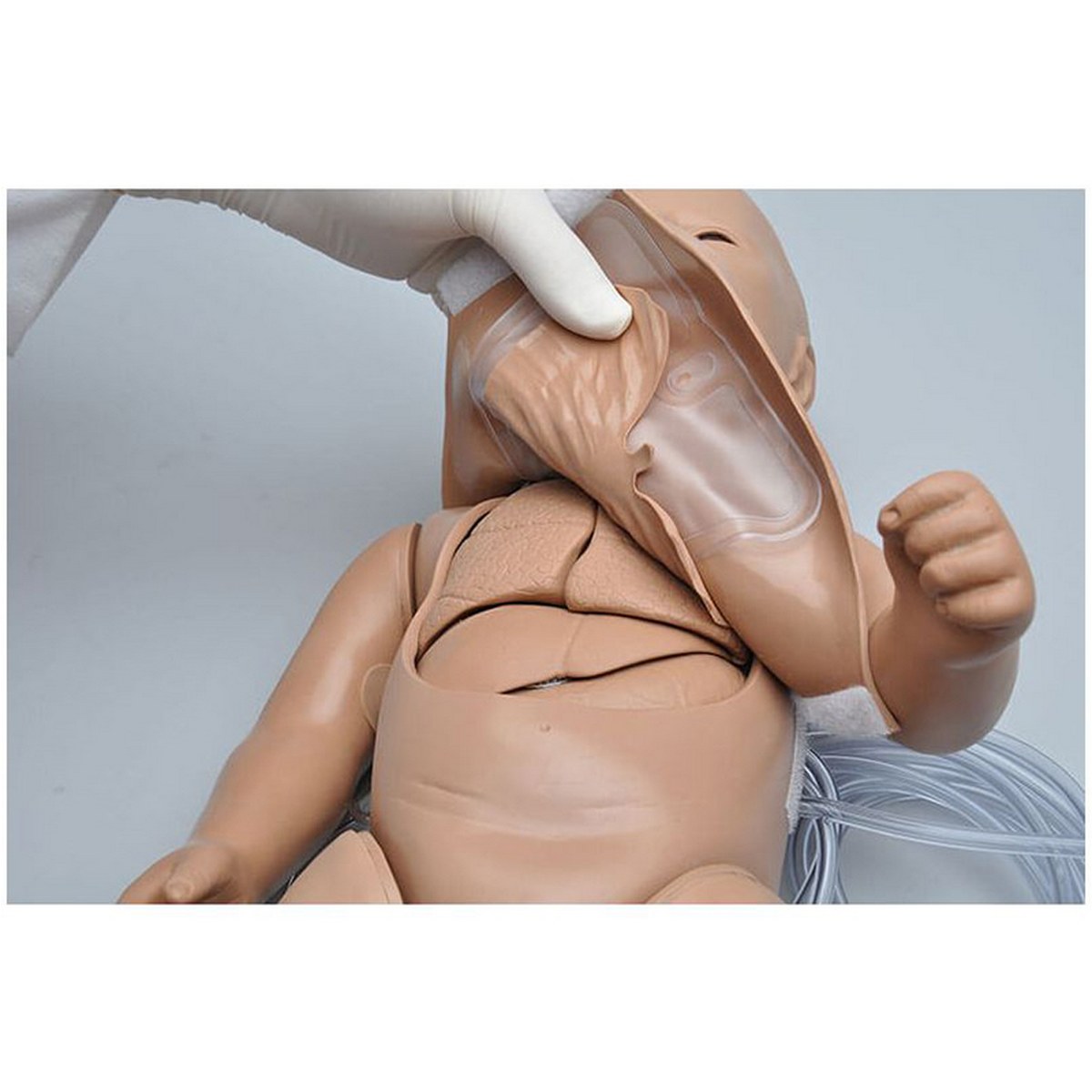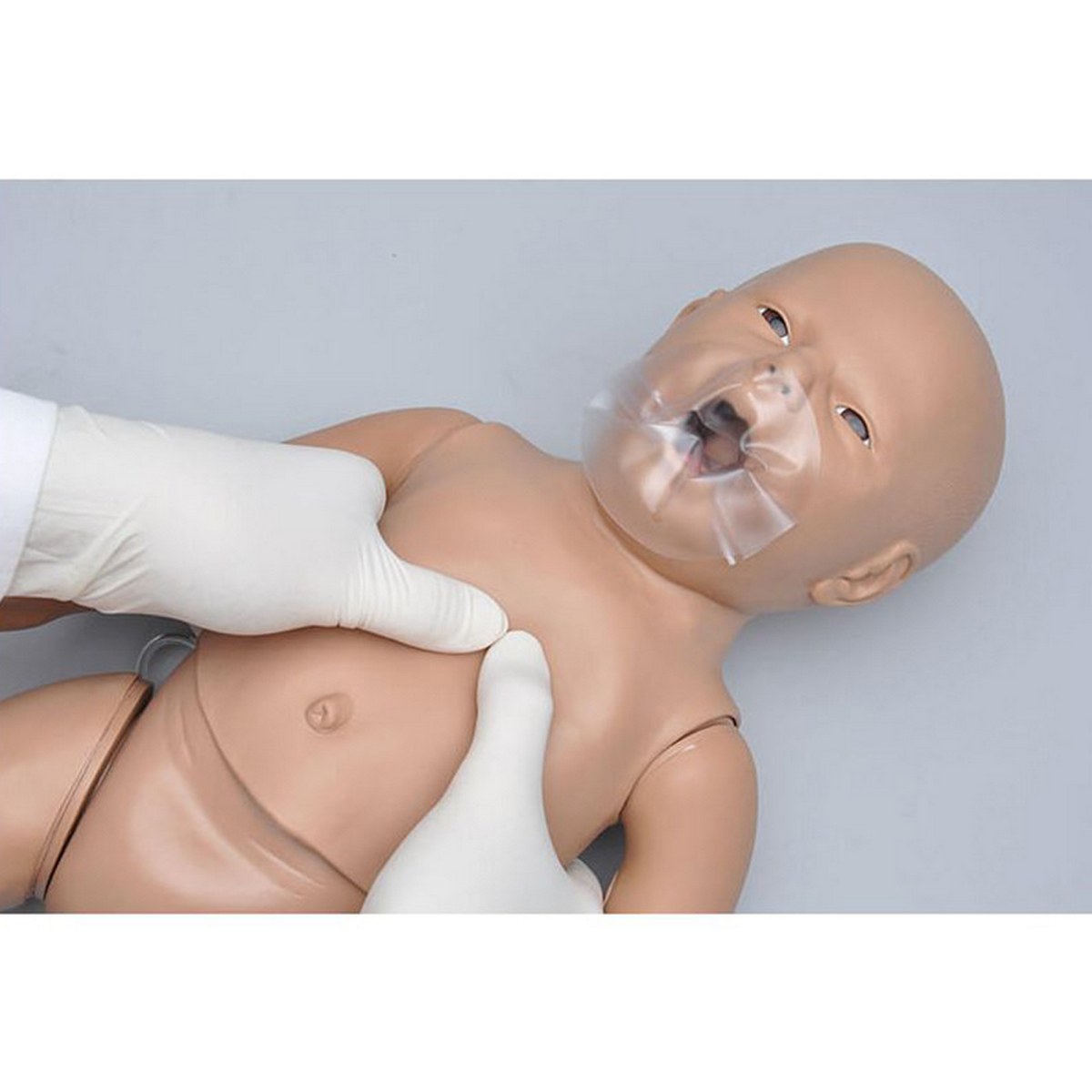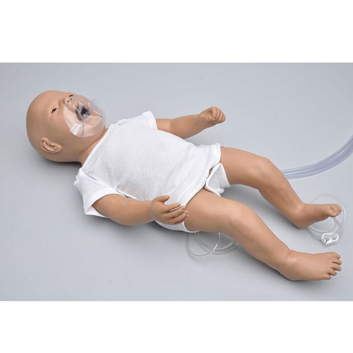 Simulador neonatal de cuerpo completo diseñado para la práctica de RCP y manejo de la vía aérea en recién nacidos. Permite entrenamiento práctico en ventilación y palpación de pulso, favoreciendo la adquisición de competencias clínicas en el abordaje neonatal.
