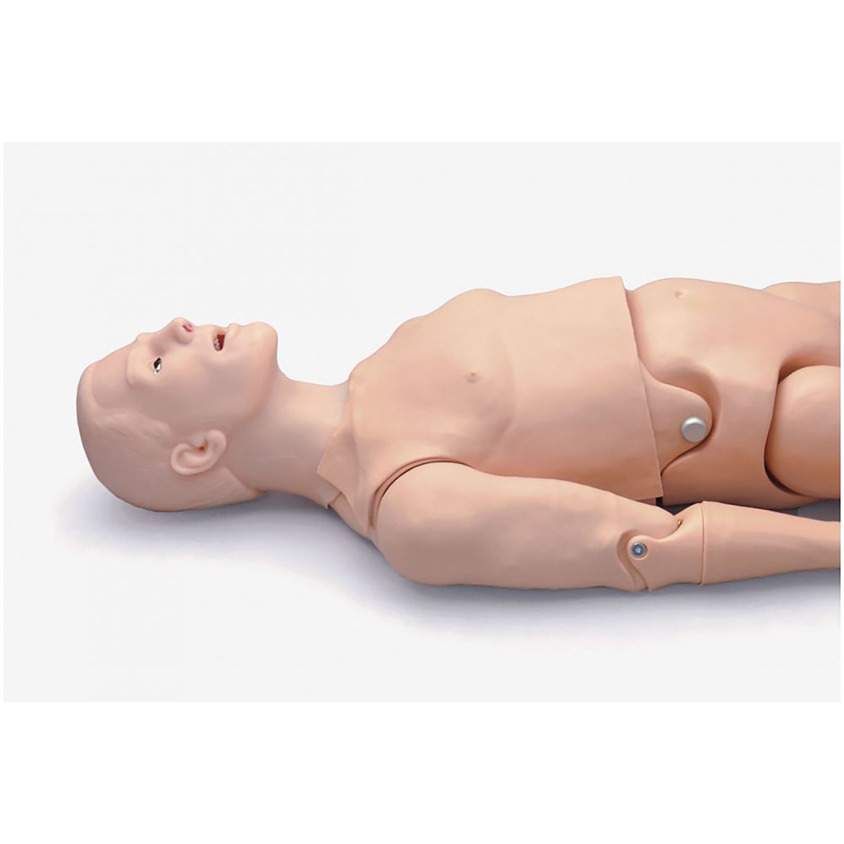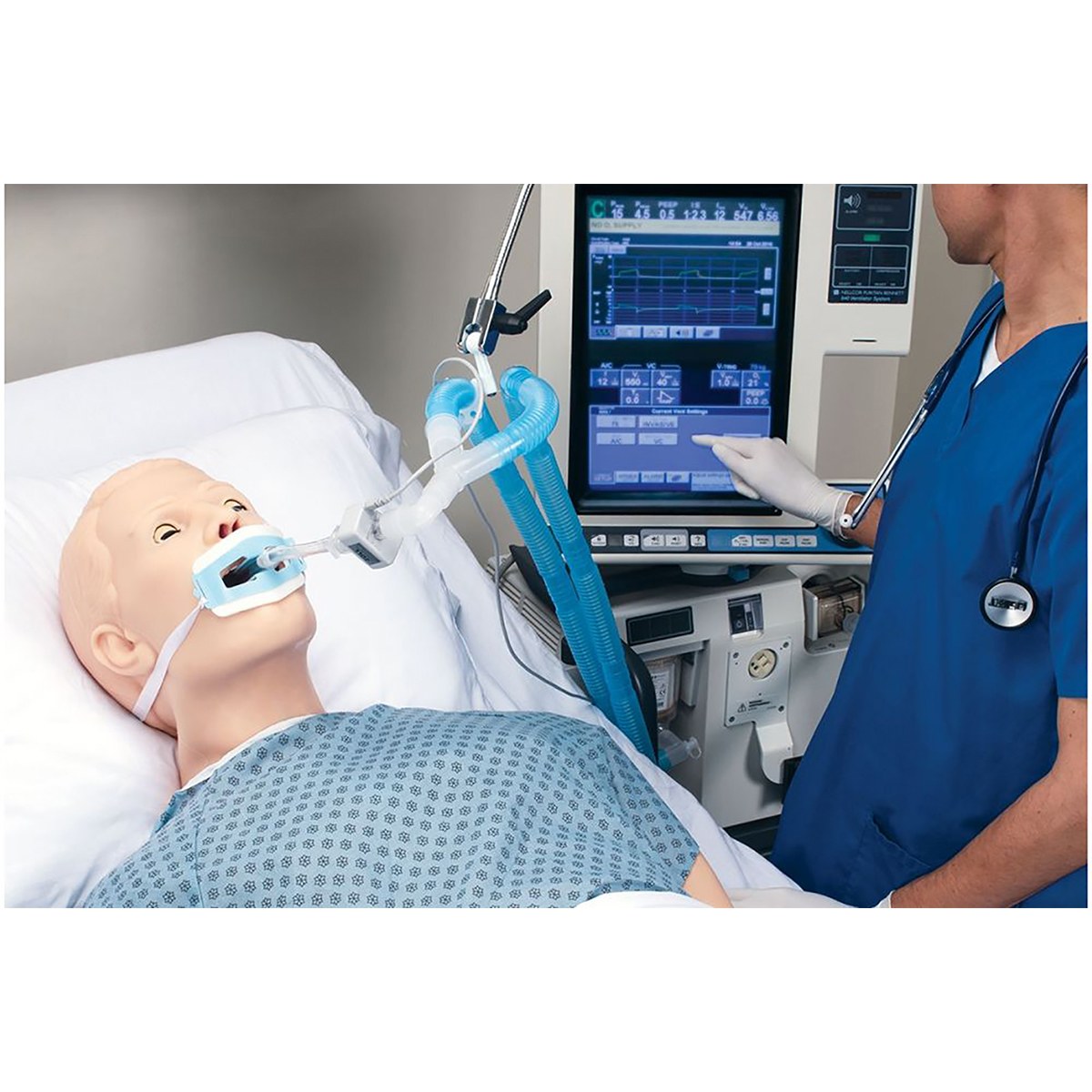 HAL® S1030 es un simulador de paciente adulto de cuerpo completo, controlado por computadora, diseñado para la formación en manejo de vía aérea y ventilación mecánica con ventiladores reales. Su sistema respiratorio patentado permite modificar en tiempo real la distensibilidad pulmonar y la resistencia bronquial bilateral, exhalar CO₂ real y reproducir patologías respiratorias complejas como en la práctica clínica.