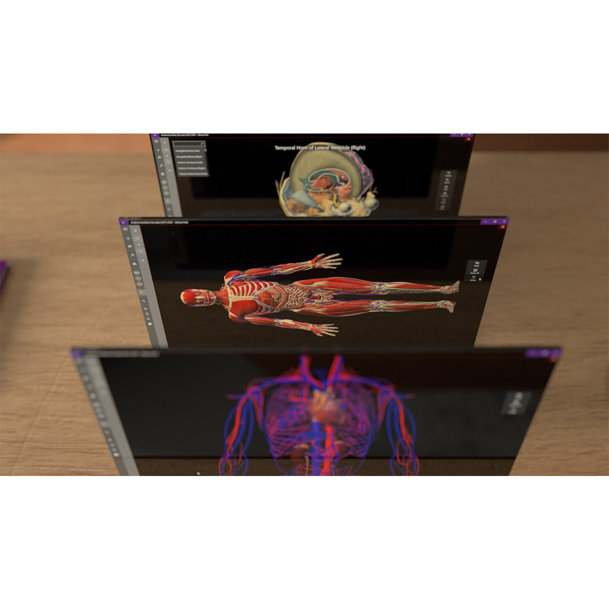 Athena HUB es una plataforma virtual 3D interactiva diseñada para la enseñanza anatómica, médica y clínica. Permite explorar el cuerpo humano mediante atlas anatómicos masculino y femenino, un cadáver virtual real reconstruido en 3D, disección digital, análisis radiológico y visualización en 2D y 3D. Incluye módulos avanzados como workstation radiológica, fotorrealismo, histología, citología, veterinaria y simulación clínica. Su interfaz es intuitiva, compatible con pantallas táctiles, admite múltiples formatos y ofrece herramientas para educación médica, planificación quirúrgica y práctica clínica.