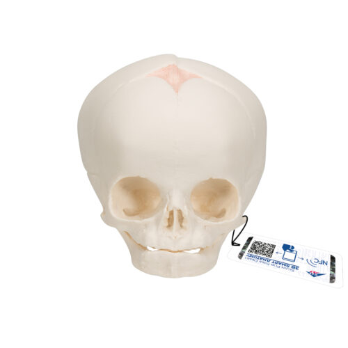 • Vaciado natural de un cráneo fetal correspondiente a la semana 30 de embarazo, con representación anatómica fiel de las estructuras propias de esta etapa del desarrollo. Modelo fabricado con alto nivel de detalle para fines educativos y de estudio. Cada modelo anatómico original de 3B Scientific® incluye acceso directo a su gemelo digital desde un smartphone, tablet o computadora. Dimensiones: 14 × 9 × 9 cm.
