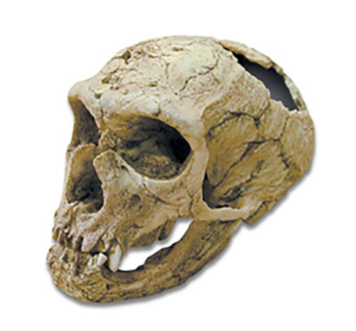 • Esta réplica del cráneo de Australopithecus afarensis está basada en especímenes reales. Esta especie vivió entre hace 3,6 y 2,9 millones de años y es considerada uno de los primeros homínidos verdaderos, conocidos únicamente en África. Presentaba un cerebro de tamaño similar al de los simios, con una capacidad craneal promedio de entre 413 y 530 cc, mandíbulas robustas y dientes grandes. Existía un marcado dimorfismo sexual, con machos adultos considerablemente más grandes que las hembras. Es una excelente herramienta didáctica para anatomía comparada.