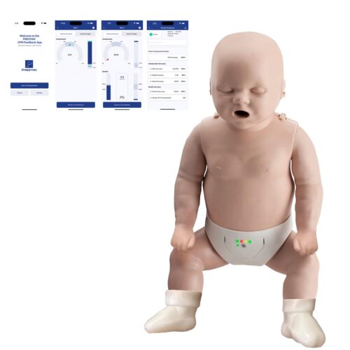 Maniquí profesional PRESTAN SERIE 2000 Con interfase de analisis de RCP avanzada dual (luces + conexion inalambrica) BEBE PARA RCP PRESTAN PROFESIONAL CON ANALISIS DE RCP AVANZADO Y CONEXION A APP. Bebe PRESTAN PROFESIONAL, de apariencia y sensación al tacto realista, liviano y rápido de usar. Combina el revolucionario monitor de frecuencia de RCP que permite recibir información instantánea sobre la frecuencia y la profundidad tanto para el instructor como para el estudiante de forma luminica con una interfase inalambrica para ver el rendimiento en la APP Prestan Feedback Totalmente compatible con las pautas actuales de la industria, incluida la Directiva de retroalimentación integrada de la AHA más reciente. Incluye el clasico monitor de frecuencia de RCP luminico de prestan que permite una retroalimentación visual de la frecuencia de RCP, donde las luces indican continuamente la progresión de la frecuencia, lo que confirma que las compresiones se encuentran dentro del rango de 100 a 120 cpm recomendado por las pautas de los principales organismos internacionales. La luz amarilla parpadeará si se excede el límite superior de 120 cpm, lo que advierte a los estudiantes que disminuyan la velocidad. Los instructores pueden monitorear a varios estudiantes de manera rápida y sencilla. Ademas sun interfase inalambrica lo conecta con la aplicación PRESTAN CPR Feedback, que proporciona información de RCP avanzada en tiempo real de alta calidad a través de una conexión Bluetooth®. Incluye frecuencia, profundidad, retroceso, ventilación y tiempo de no intervención) se monitorea, se muestra fácilmente y está disponible para informes, lo que permite a los estudiantes autocontrolar el rendimiento y ganar confianza durante el entrenamiento de RCP. La aplicación instructores permite brindar capacitación integral en RCP mientras monitorean el desempeño de RCP para hasta seis (6) estudiantes a la vez. Esta aplicación también está equipada con una función de informes que permite descargar los resultados del entrenamiento de RCP directamente desde la aplicación. Incluye simulador, bolso de transporte de regalo, sistema de pulmones, sensores para conexion de la app -